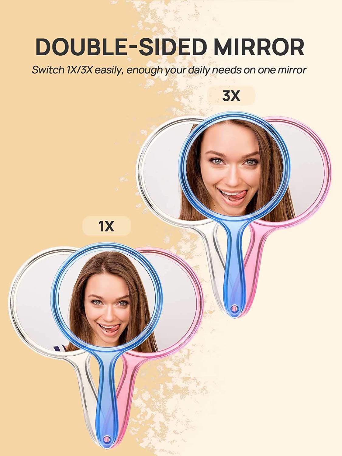 Product Name: Double-Sided Handheld Mirror 1X/3X Magnifying Mirror with Handle