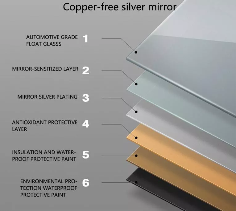 Copper-free Silver Mirror5MM high-definition copper-free silver mirror is anti-oxidation, high-definition imaging is not deformed, the lacquer is durable and long-lasting, and the mirror is transparent and clear |