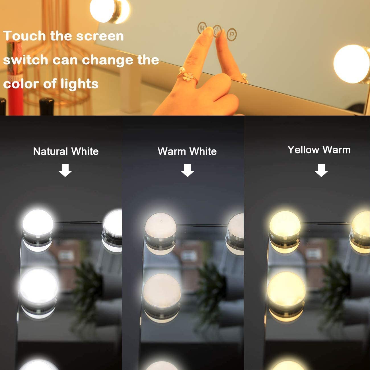 【3 COLOR MODES】 WITMIRROR lighted makeup mirror with white, neutral and warm color available, short touch the left button to change the light color, making your dressing table more beautiful, convenient for you to do makeup.