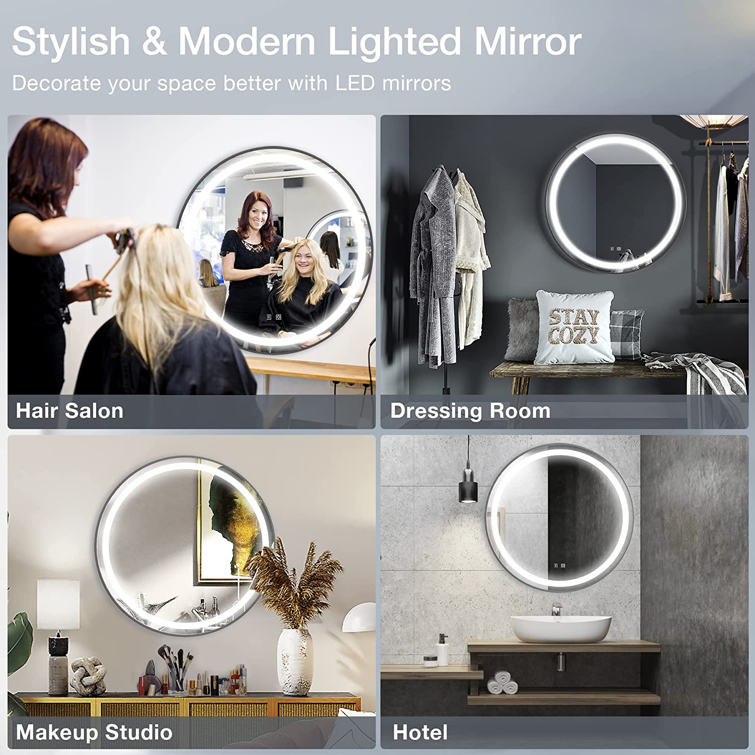 【Enjoy Smart Home Life Experience】The round led mirror with motion sensor allows you to enjoy the experience of smart touchless switch: The sensor is on the lower right side, place your hand 5-10cm close the sensor to turn on/off the mirror. Ideal for bedroom, beauty salon, make-up studio, dressing room, hotel etc.