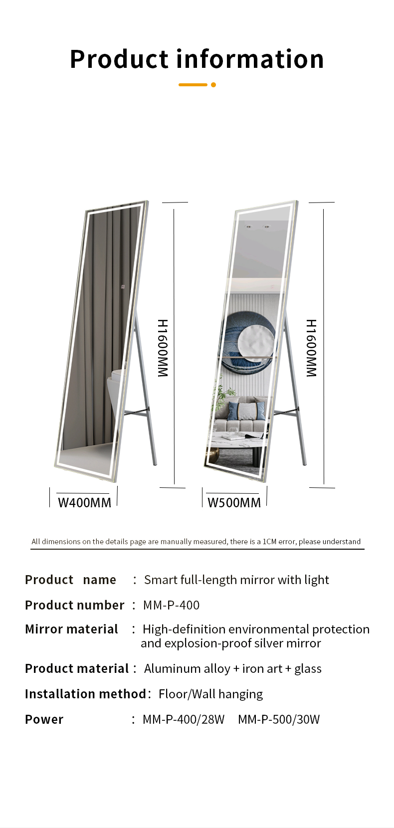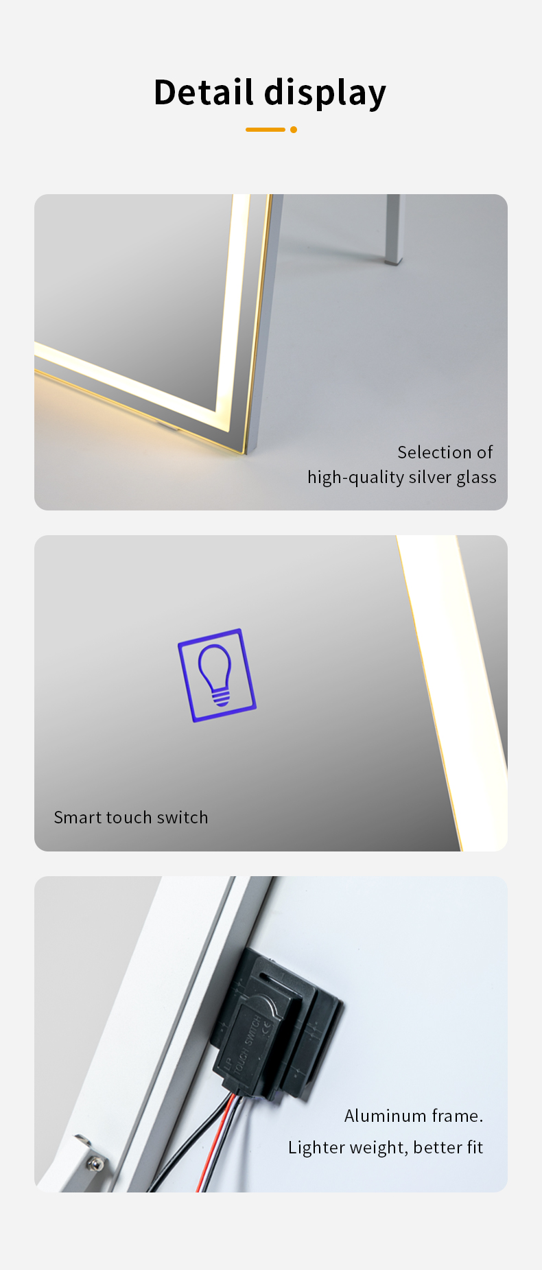 Specification of LED Dressing Mirror: