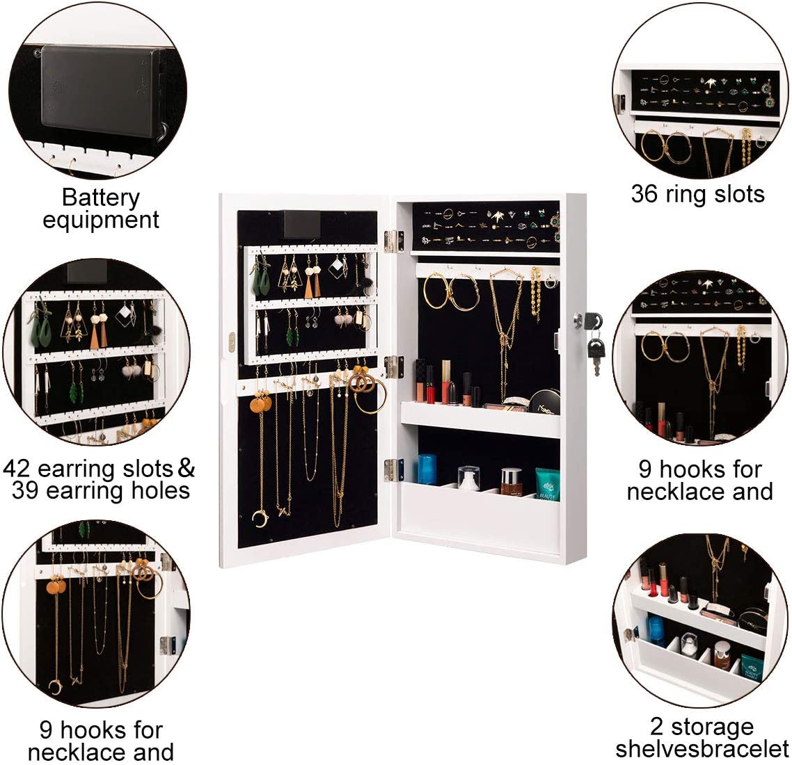 【1】STYLISH AND WELL-MADE ARMOIRE: The jewelry armoire is constructed with durable MDF material, can be mounted on the wall with screws;